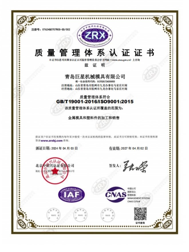 青島巨星機械模具有限公司位于美麗的膠州灣畔——青島市膠州市。成立于1995年。多年來一直致力于塑料模具,金屬沖壓模具,橡/硅膠模具,板片材擠出模具等模具的研發(fā)制造,并且配有塑料制品標準化生產(chǎn)車間,90T-800T各型號注塑機齊全,可為您提供模具研發(fā)與產(chǎn)品生產(chǎn)一站式服務(wù),本司已通過ISO9001質(zhì)量管理、ISO14001環(huán)境管理、ISO45001職業(yè)健康安全管理等體系認證。目前已與美國通用汽車,韓國大宇造船、現(xiàn)代重工,俄羅斯,巴西,非洲等國家或地區(qū)的實力公司建立長期合作關(guān)系。
